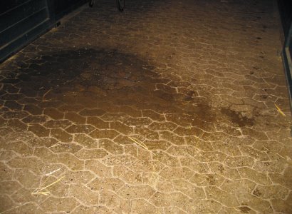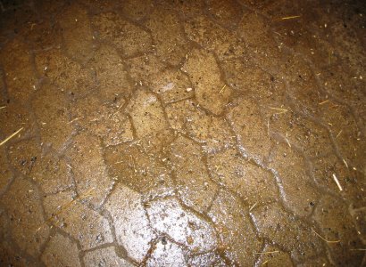 Zuchtstutenstall neben der Halle  | |  | |  | | Das Stalldach ist an den Lüftungsschächten undicht und es regnet richtig rein | | Der Boden ist dann so nass, dass man im Winter in der Stallgasse Salz streuen muß, weil sich sonst Eisflächen bilden | | Schachtabdeckung zwischen Stall an der Halle und Paddock Hier kann ein Kind oder ein Pferd reinfallen, wenn es auskommt | | | | | | |