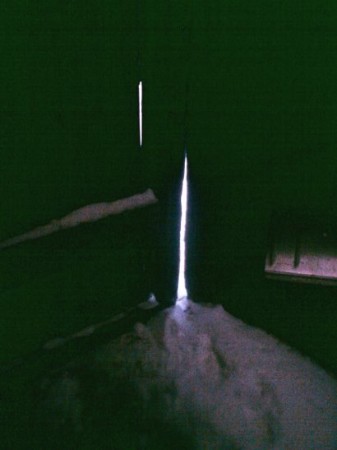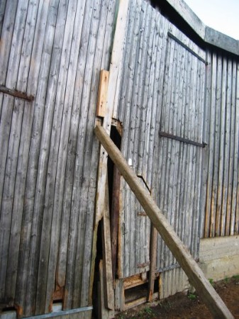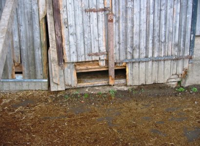 Die Stalltüren sind so verzogen und undicht, dass es durch die bis zu 10cm breiten Ritzen im Winter den Schnee richtig reindrückt. Die Eine Türe läßt sich gar nicht richtig schließen, da sie so verzogen ist, dass das Schloss nur Verzierung ist. | |
