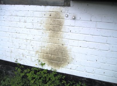 Durch die kaputte Dachrinne läuft das Wasser an 3 Stellen direkt an die Hauswand und eben durch die undichten Fenster oder wenn sie offen stehen, direkt in die Boxen rein | |