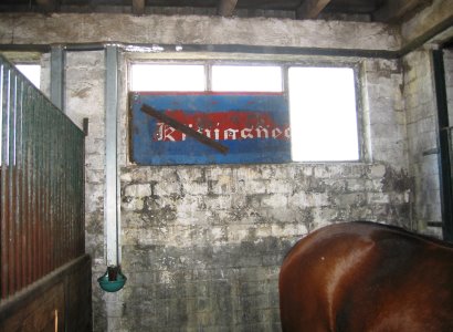 | | | | Insgesamt sind im Reitpferdestall 4 Fenster kaputt. Auch ist hier die Wasserleitung sehr marode und wurde schon auch Pächterkosten mehrfach repariert. Zusätzlich gibt es im Winter und bei feuchtem Wetter täglich einen Kurzschluß in der Stromleitung, so dass der F1 Schalter rausspringt. Ohne Taschenlampe braucht man morgens nicht in den Stall. | |