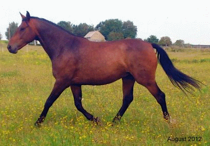 Das 2. Fohlen aus unserer Classika ist ein dunkelbrauner Wallach. Cian Classic zeigt sehr gute und elastische Bewegungen mit einer super Bergaufgaloppade und tollem Schritt. Dazu kommt ein spitzen Interieur. Er wurde als Absetzer in die Altmark in kompetente Hände verkauft. Bedingt durch einen Unfall im Fohlenalter ist der Turniersport für ihn vorerst nicht geplant. Allerdings hat seine Besitzerin sehr viel Spaß an dem tollen Kerl als Reitpferd.
